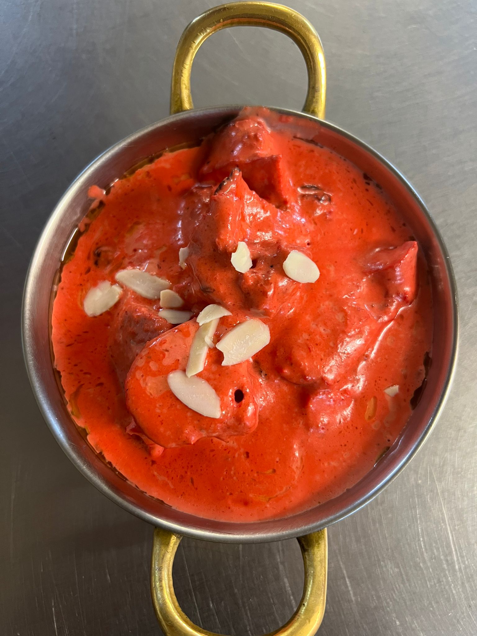 Poulet grillé au tandoor sauce tomate, crème fraîche cajou et beurre